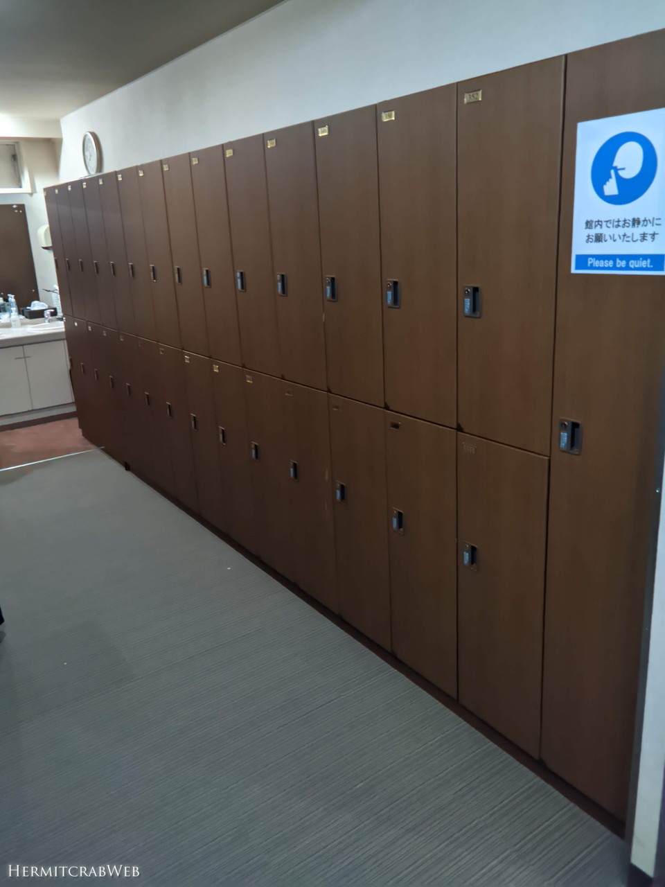 チェックインが済むとカプセルのある階へ移動。カプセルが並ぶエリアの手前にはロッカールームがありました。