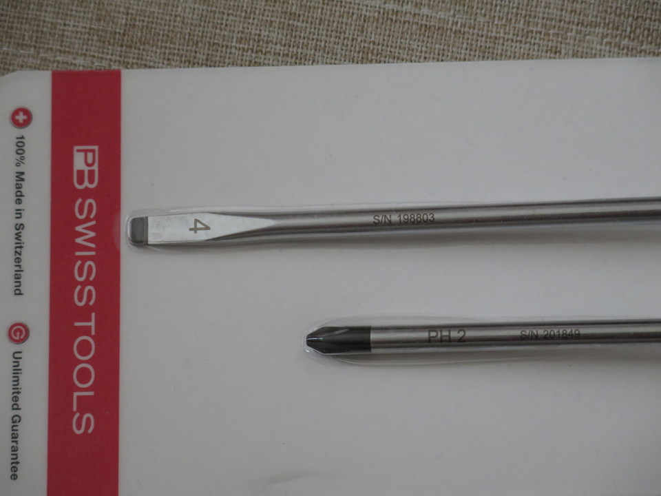 PB SWISS TOOLSの特徴として、全ての製品にシリアルナンバーが刻印されていることが挙げられます。このナンバーから、検品された日付などの情報がわかるようになっています。製品に対する確固たる自信がうかがえますね。100%スイス製、無期限保証の文字が小さいながらも大きく見えます。ちなみに下の2番ドライバーは2014年1月22日に検品されたとのことです。