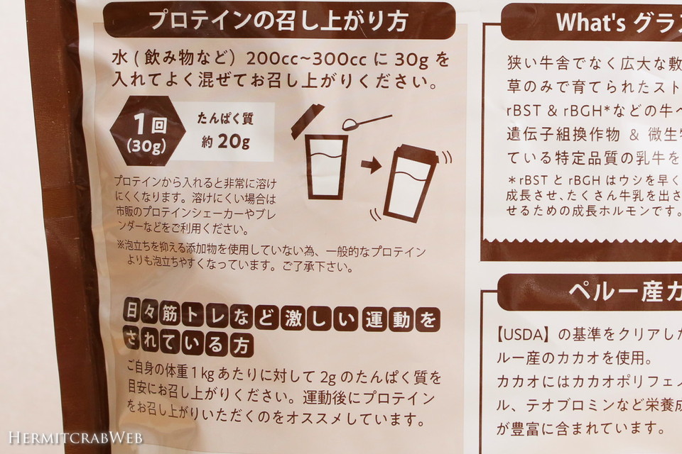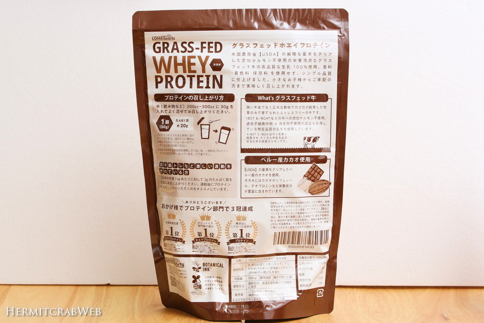 初めて買ってみたLOHAStyleホエイプロテインの特徴は、パッケージに書いてあるとおり、