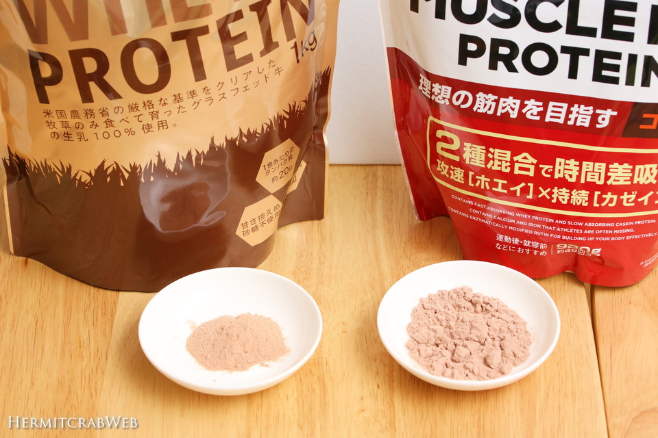 マッスルフィットプロテインのほうが、若干しっとりした感じがするような気もしますが、こちらは開封してから日が経っているからかもしれません。