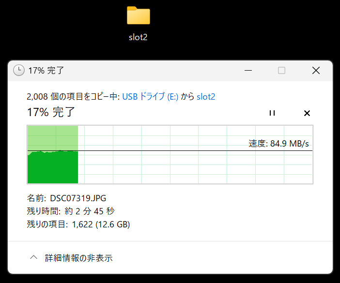 スロット2に入れているSDカードから作業するため、PCにslot2というフォルダを作り、そこにデータをフォルダごとコピーしました。