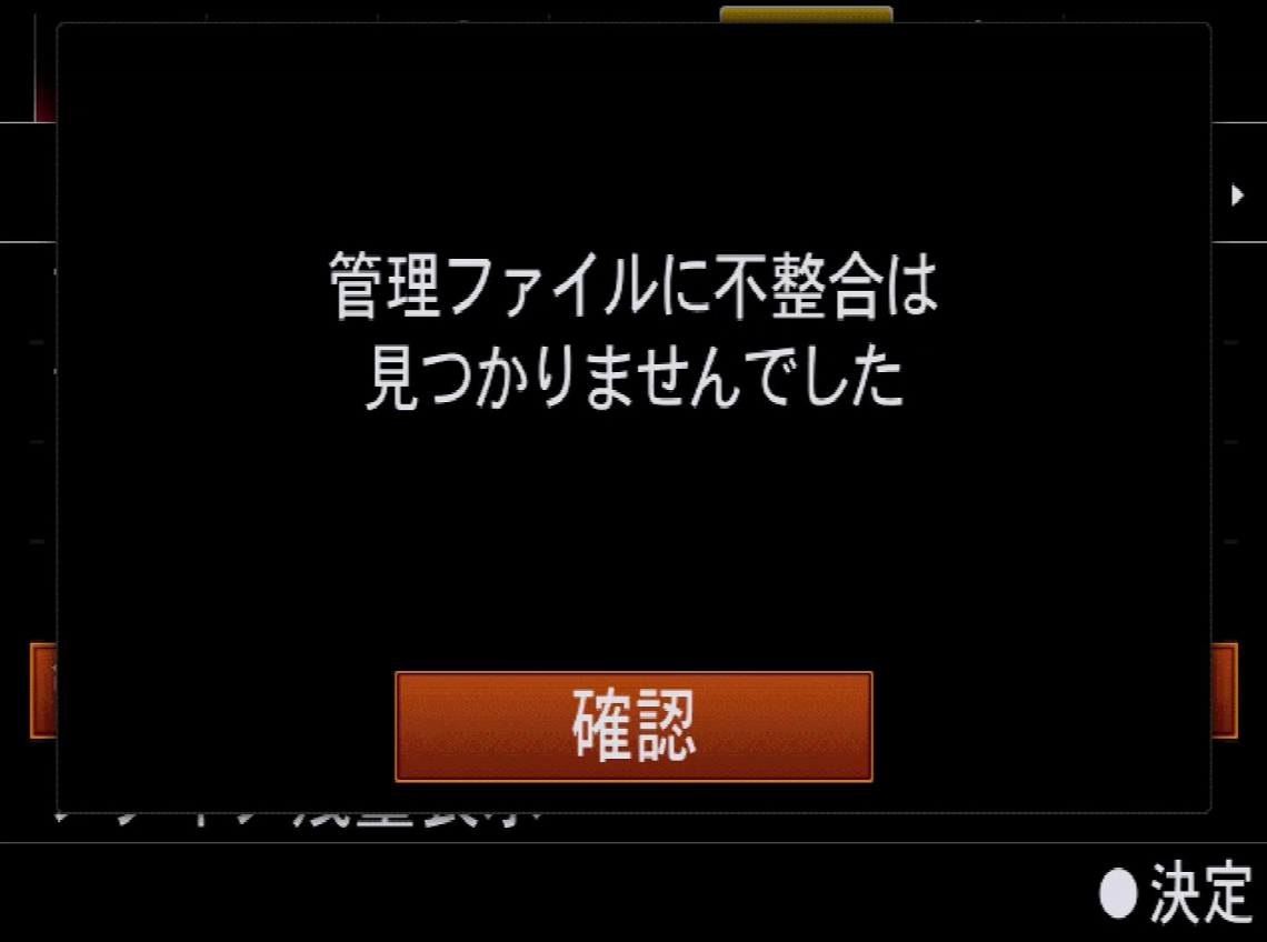 修復も無事に終わり、管理ファイルに不整合は見られませんでしたとのメッセージが出ました。これで気持ちよく撮影ができます。