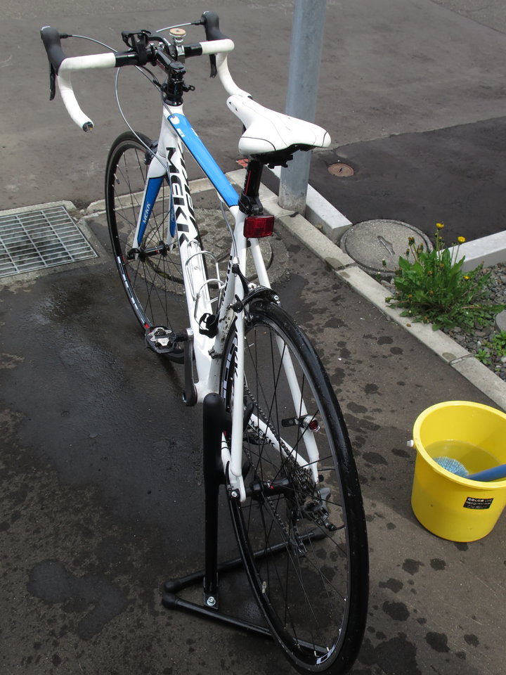 慎重に運転し、なんとか帰宅しました。タイヤもフレームもドロドロになってしまったので、洗車しました。