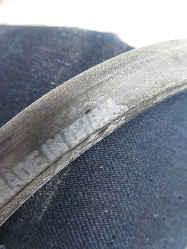さてせっかく修理したこのチューブ、普通に考えれば次のパンク時に備えて予備として保存しておくってものですが、こういったものって信頼性が非常に大事です。どういうことかというと、修理をしたチューブは当然信頼性が下がっています。もしも修理をミスっていることに気づかず予備のチューブにして、いざという時に交換したら修理がうまくできてなく、または修理はきちんとできているものの経年変化で空気が入らない!なんてことになっては大変です。そんな事態を防ぐためには・・・面倒ですけど修理後のチューブを再度タイヤに入れ(交換したチューブは予備として再度保存)、空気を入れて問題ないかチェックをしてみなければなりません。空気が入っても、長い時間かけてゆっくり空気が抜けていく(いわゆるスローパンク状態)かもしれませんし。