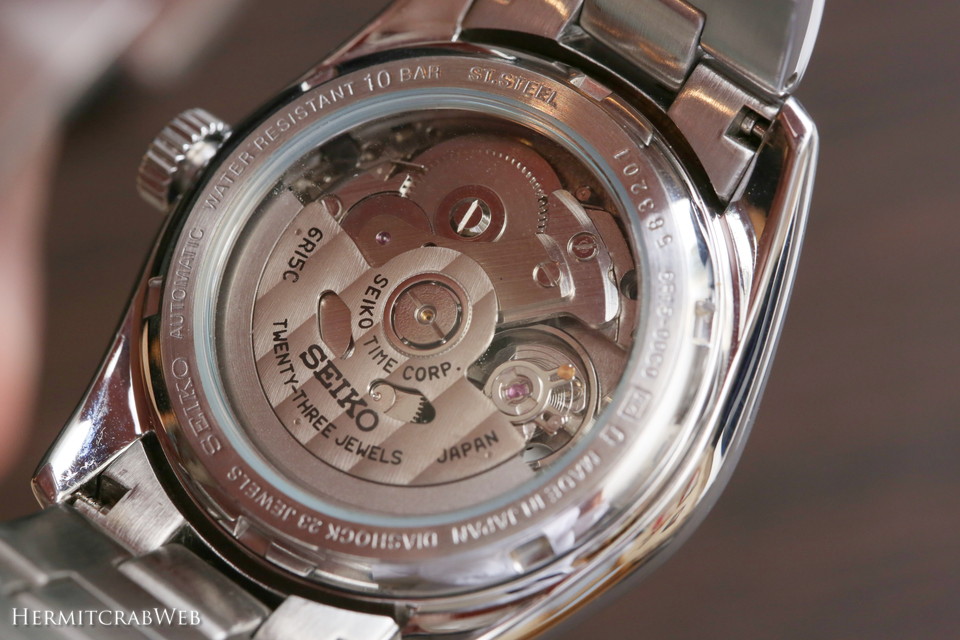 リューズにはSEIKOの頭文字Sがレトロな書体で刻印されています。