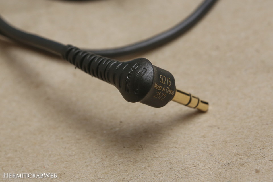 3.5mmステレオミニ部分はL字型になっています。SHUREロゴとSE215の記載あり。SE215専用のケーブルのようです。