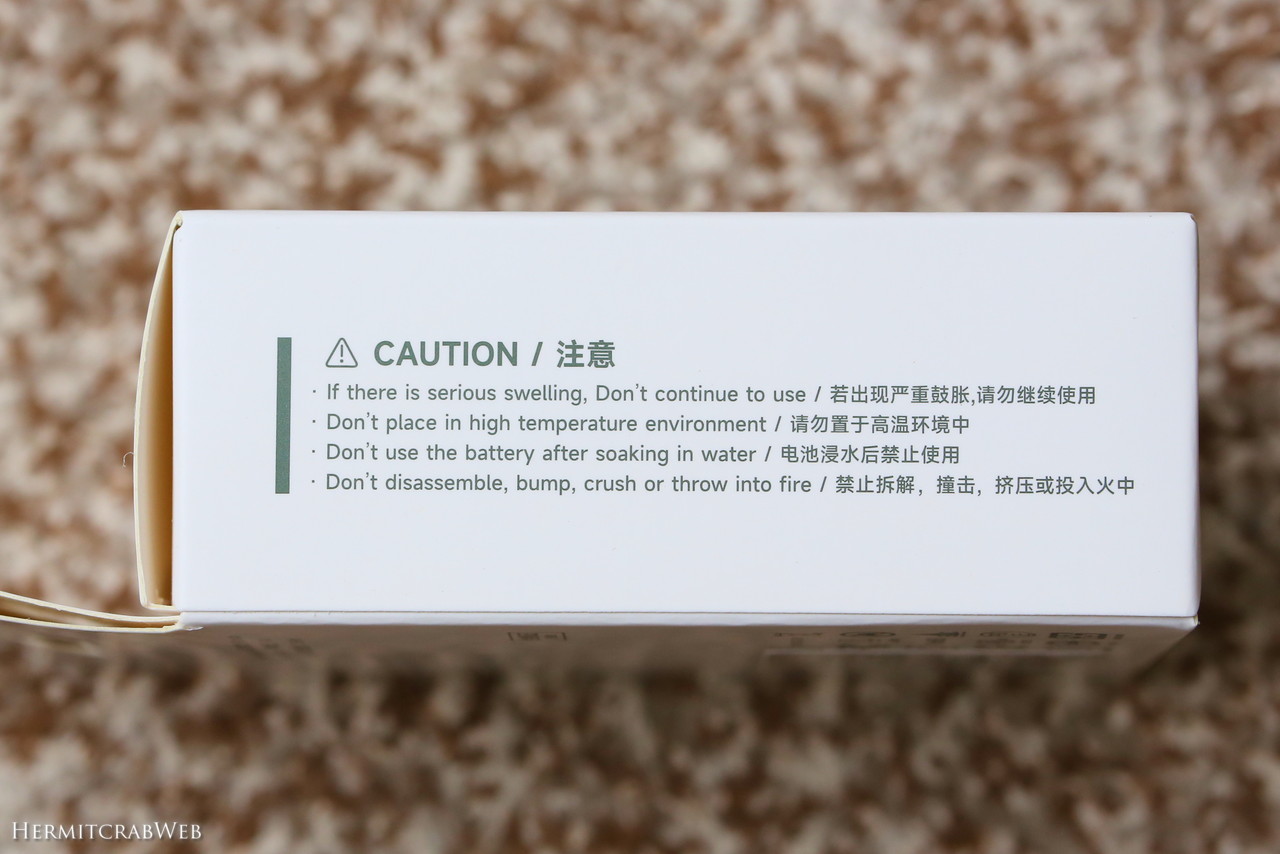 開封していきます。パッケージは厚紙製。裏面に色々書いてあります。USB Input Voltageは5V2Aと書いてありますが、上で引用した仕様の以下で紹介する取扱説明書の表記、更には自分で行った充電テストの結果とは異なりますし、コレは誤植でしょう。