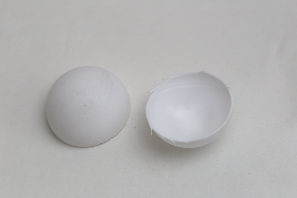 容器を肩の部分で切断します。ピンポン玉に比べ、柔らかい素材なので加工は簡単です。先ほどピンポン玉ディフューザーで照らしていたのは切り落としたこの部分でした。