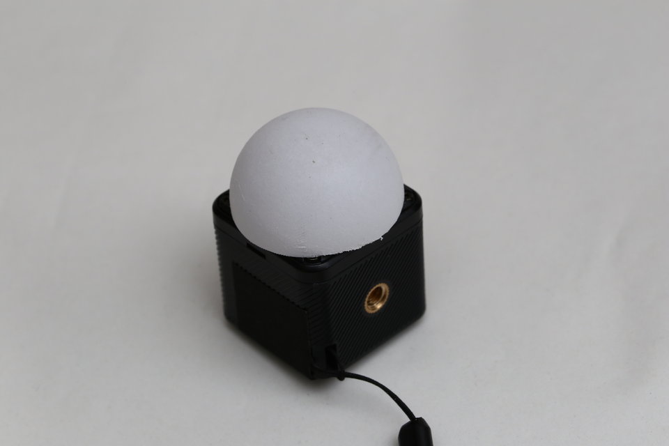 ピンポン玉ディフューザーをUlanzi L1本体に白系のテープで固定し、同じ光量で謎の物体を照らしてみました。ディフューザー無しより光が柔らかくなり、影も少しボケた感じになりました。ディフューザーの効果アリと判断できます。一方で、光量は格段に減少しています。そもそもディフューザーを付けると光量が落ちるのは当たり前なのですが、結構落ちている気がしますね。ピンポン玉は意外と厚い、ということかもしれません。ただ厚みがないとディフューズ効果は薄れてしまいますから、悩みどころというか、割り切って使うことが寛容なのかもしれません。