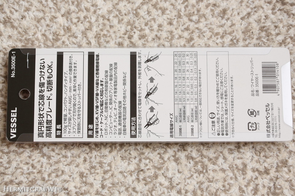ベッセルは大阪に本拠を置く日本の工具メーカーです。このワイヤーストリッパーも安価ながらMADE IN JAPANです。
