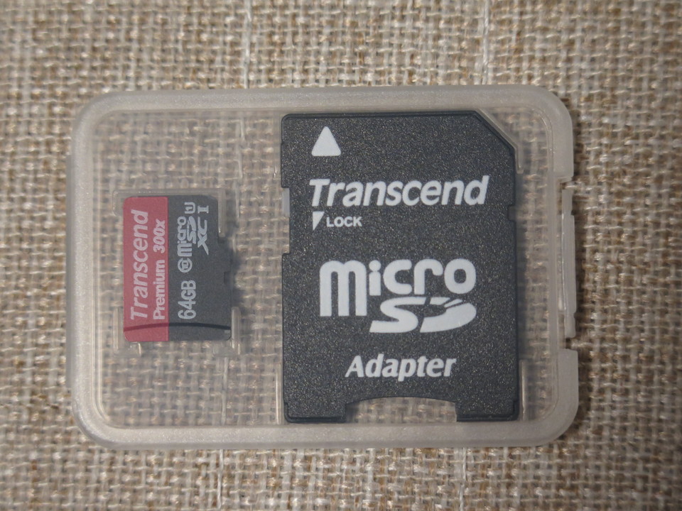 microSDカードは64GBのものを購入。本体に64GB、microSDで64GB、あわせて128GBのデータを保存できます!やった!