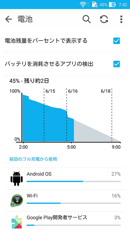 というわけで再びwifi専用機になった小生のZenfone2。仕事に持って行っても仕方がないため日中は自宅でおとなしくしているわけで、電池の持ちがよくて仕方がありません。とほほ。